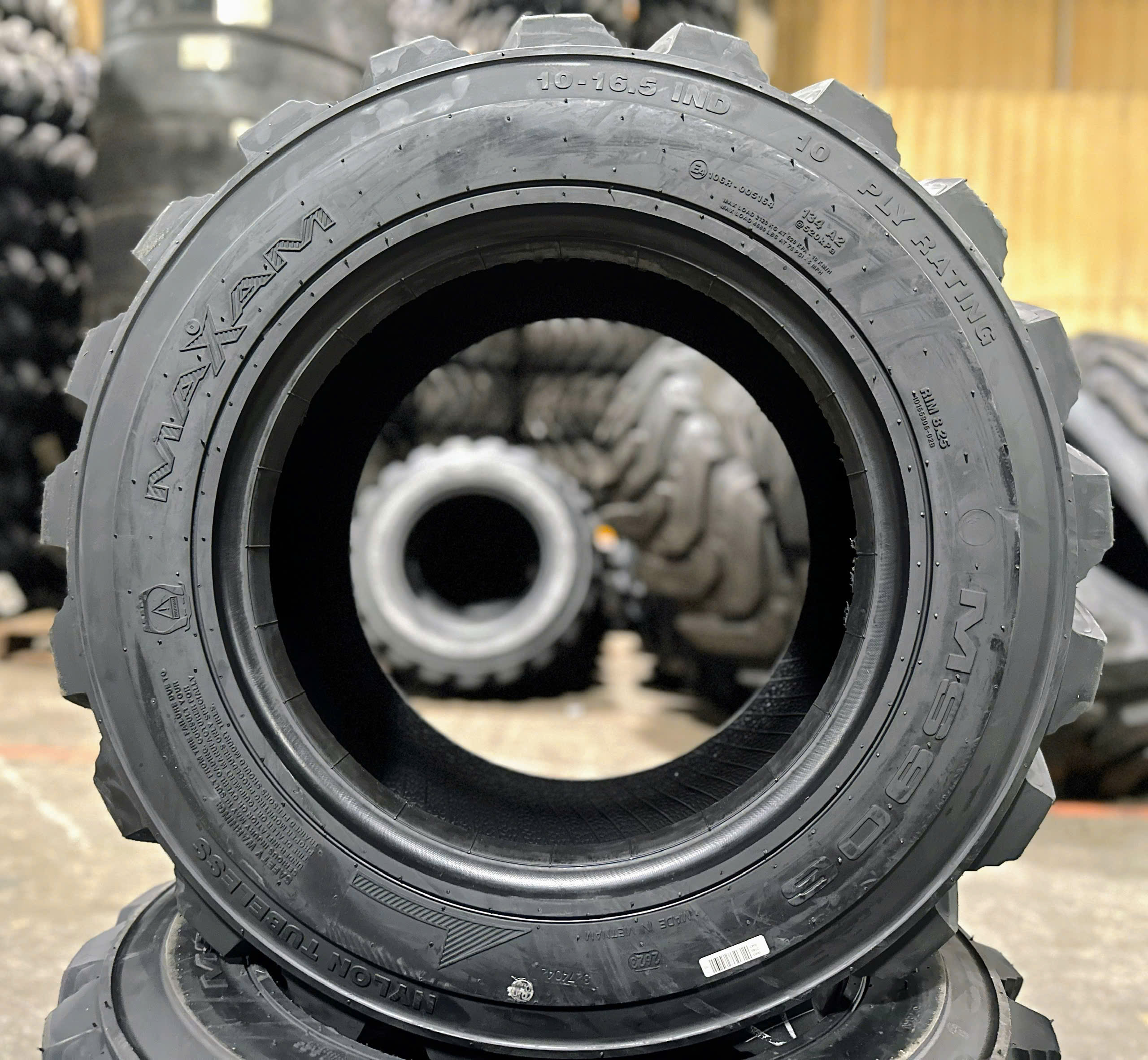 Cấu trúc chắc chắn giúp lốp 10-16.5 Maxam chịu tải cao, phù hợp công việc nặng.